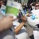 Janine Lubey, centre, promotes the Lotto-Max lottery at Yonge and Dundas Square in Toronto on Friday, September 25, 2015. The Lotto-Max lottery will make history tonight by offering an estimated jackpot of $60 million for the first time. THE CANADIAN ...